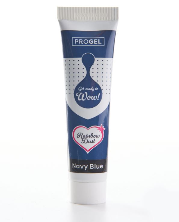 Marinblå pastafärg för bakning. Rainbow Dust ProGel är mycket koncentrerad pastafärg med hög standard. Endast en liten mängd Progel krävs för att ge en djup och fyllig färg till sockerpasta, marsipan, smörkräm eller kaksmet. Pastafärgen kommer i en praktisk tub, vilket minimerar spill och kladd.