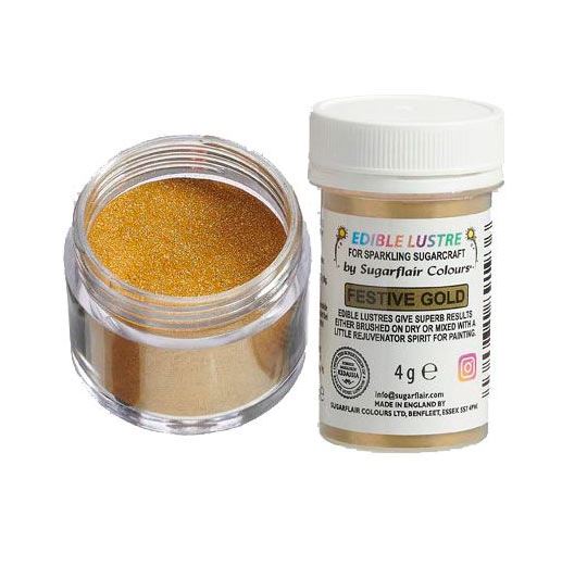 Pulverfärg i guldskimrande ton till din bakning. Sugarflair Lustre Pulverfärg används för att skapa vackra, verklighetstrogna effekter på modelleringar, dekorationer och figurer av marsipan eller sockerpasta. Applicera enkelt en liten mängd pulver med en mjuk borste. Pulverfärgen kan även användas som färg, blanda då lite av pulvret med en droppe alkohol; Rejuvenator Spirit.