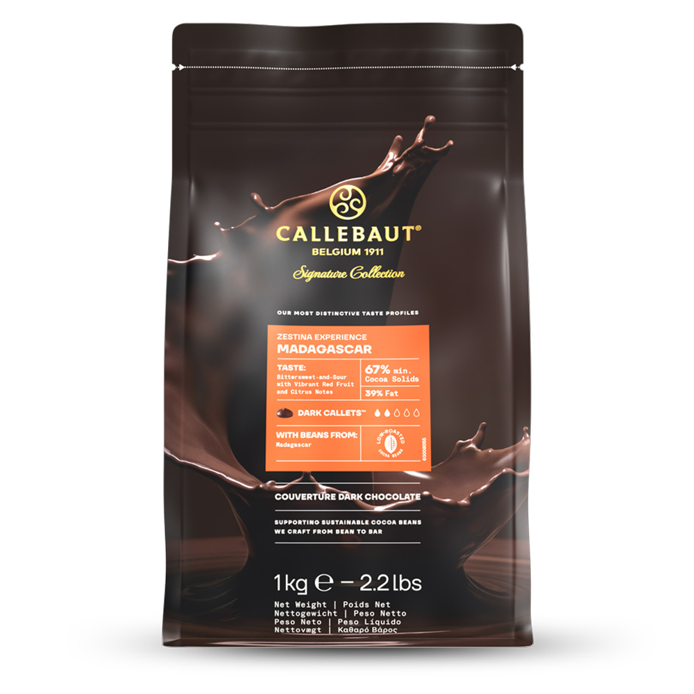 Zestina Madagascar 67% erbjuder en klar och lätt karaktär som uppskattas av professionella chokladkreatörer och konditorer. Den fruktiga profilens friskhet gör chokladen perfekt för ganacher med fruktinslag eller desserter där chokladen ska framhävas.