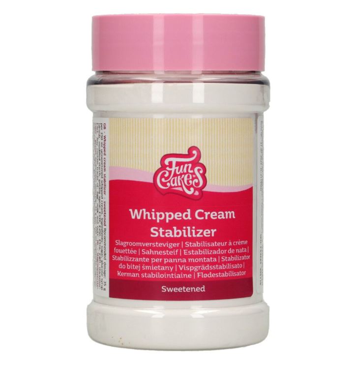FunCakes Whipped Cream Stabilizer är ett sötat stabiliseringspulver som gör att vispgrädden håller sig fast och formbar – perfekt för spritsning och dekoration av tårtor och bakverk. Tack vare den tillsatta sötman behöver du inte tillsätta extra socker i grädden.