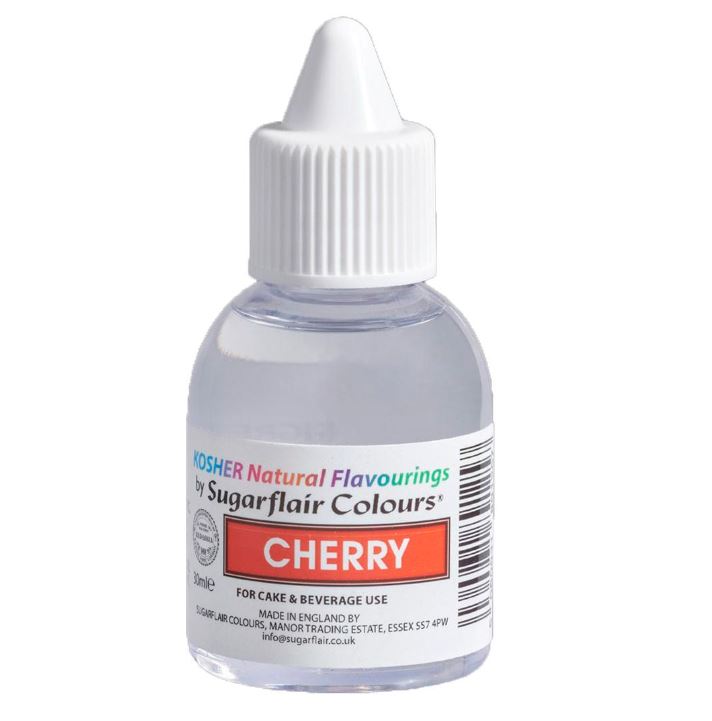 Arom från Sugarflair med smak av körsbär. Sugarflairs aromer är 100% naturliga. Passar utmärkt för att smaksätta tårtor, cupcakes, icing, choklad, glass, desserter.