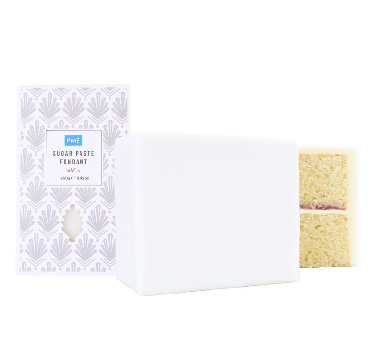 Mjuk och smidig sockerpasta från PME som passar utmärkt till att täcka tårtor eller för att skapa kreativa dekorationer. Sockerpasta kan kavlas väldigt tunt utan att spricka och tack vare sin elasticitet kan den enkelt stretchas över tårtan för att skapa skarpa kanter.