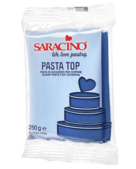 Saracinos Top paste är speciellt framtagen för att täcka tårtor. Sockerpastan är oerhört elastisk och hållbar och du kan kavla den så tunt som till 1 mm. Här i marinblå färg.