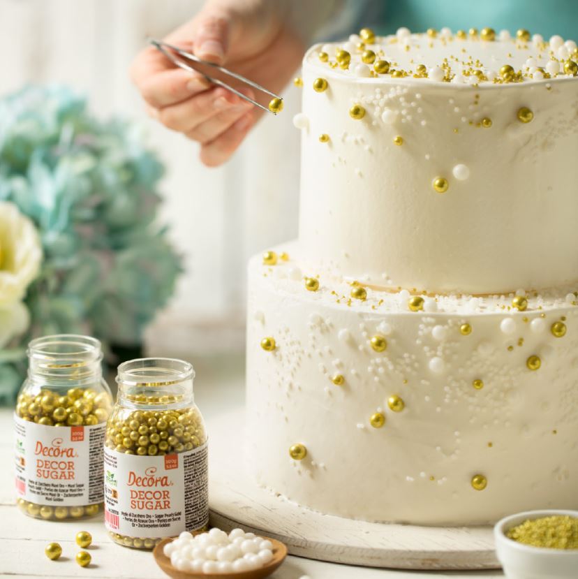 Stora guldskimrande strösselkulor från Decora. Strösselkulorna är ca 7 mm stora. En fin dekoration till tårtor, cupcakes och bakverk.