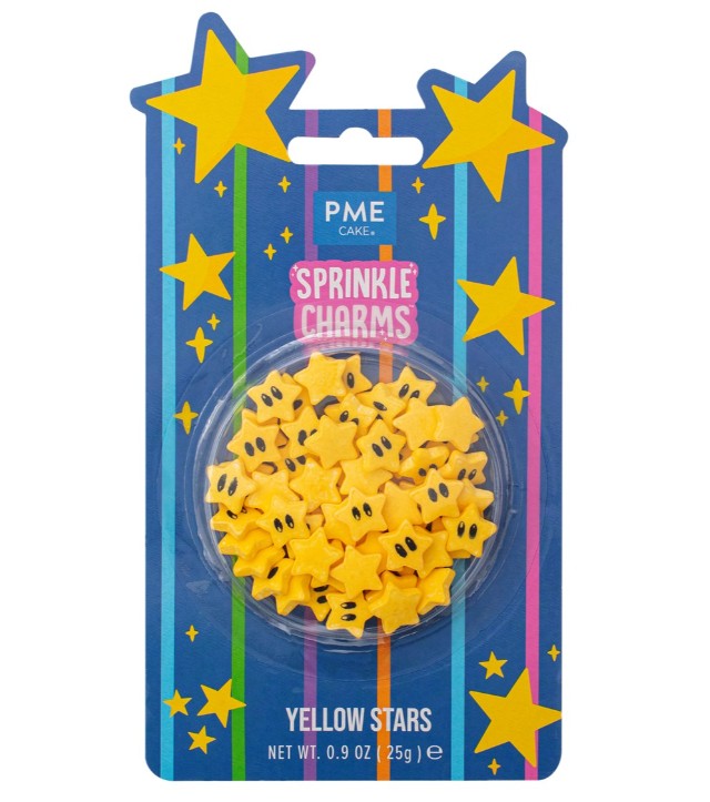 Ge dina bakverk en lekfull och glad touch med PME:s gula stjärnor med ögon! Dessa charmiga små dekorationer gör det enkelt att skapa tårtor, cupcakes och andra godsaker som verkligen sticker ut – perfekt för barnkalas, temafester eller bara för att sprida lite extra glädje.