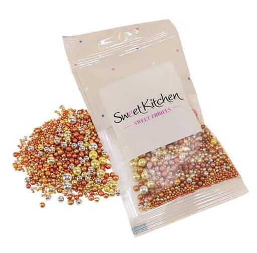 Lyxig, skimrande strösselmix i guld, silver och brons från Sweet Kitchen. Perfekt som dekoration på födelsedagstårtor, muffins, glass, cupcakes och andra söta godsaker.