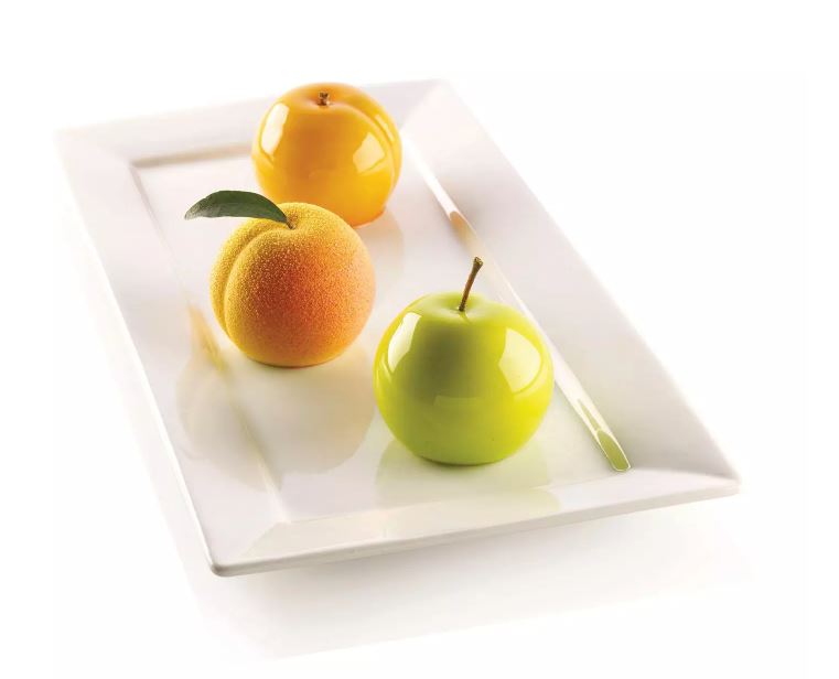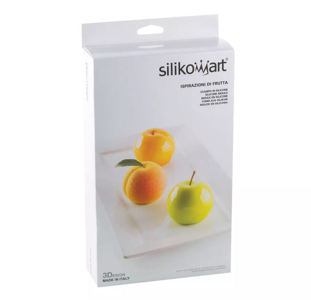 Silikonformen Ispirazioni di Frutta från Silikomart är perfekt för att skapa desserter i trendig trompe-l'œil-stil – där bakverk förvandlas till verklighetstrogna, saftiga och färgglada frukter såsom äpplen, persikor och aprikoser. Formen tillhör 3Design-serien och varje hålrum har en innovativ invändig kant som ger dina kreationer en lätt rundad bas.