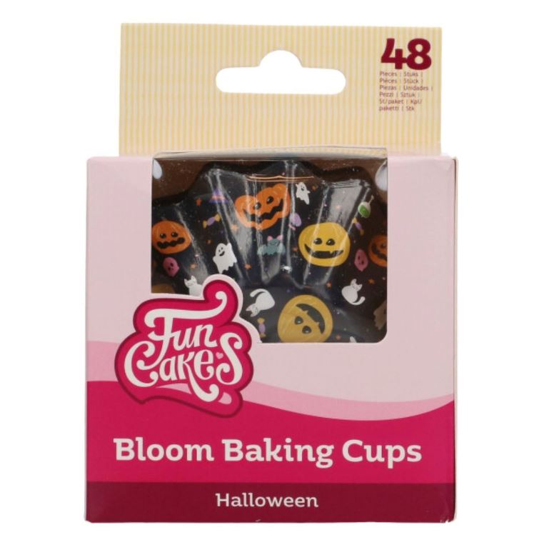 Baka unika och stämningsfulla Halloween-cupcakes utan muffinsplåt med FunCakes Bloom Baking Cups Halloween! Dessa stadiga muffinsformar är tillverkade av högkvalitativt, tjockt och fettresistent kartong som gör att de står stadigt på egen hand och behåller formen perfekt under gräddningen.