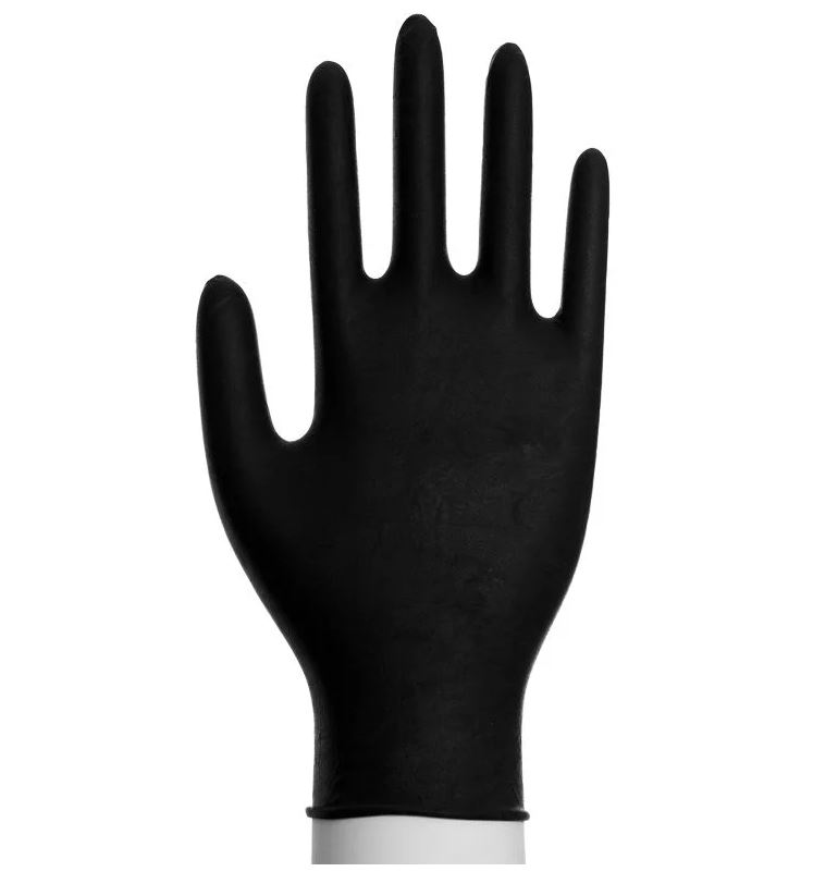 Svarta engångshandskar i puderfri nitril med rullkant. Handskarna är tunna med bra fingertoppskänsla. Godkända för att hantering av alla typer av livsmedel.