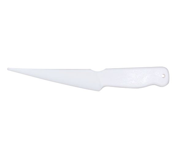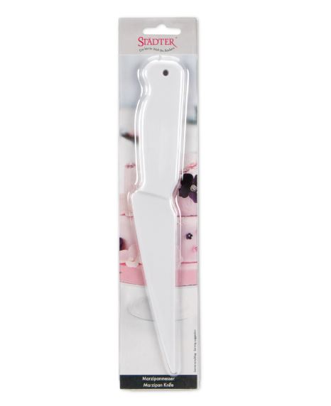 Plastkniv från Städter, perfekt för arbete med sockerpasta och marsipan. Tack vare plastmaterialet fastnar inte pastan på bladet, vilket gör den enkel att använda och ger rena snitt. Ett smidigt verktyg för modellering och dekoration av tårtor och bakverk.