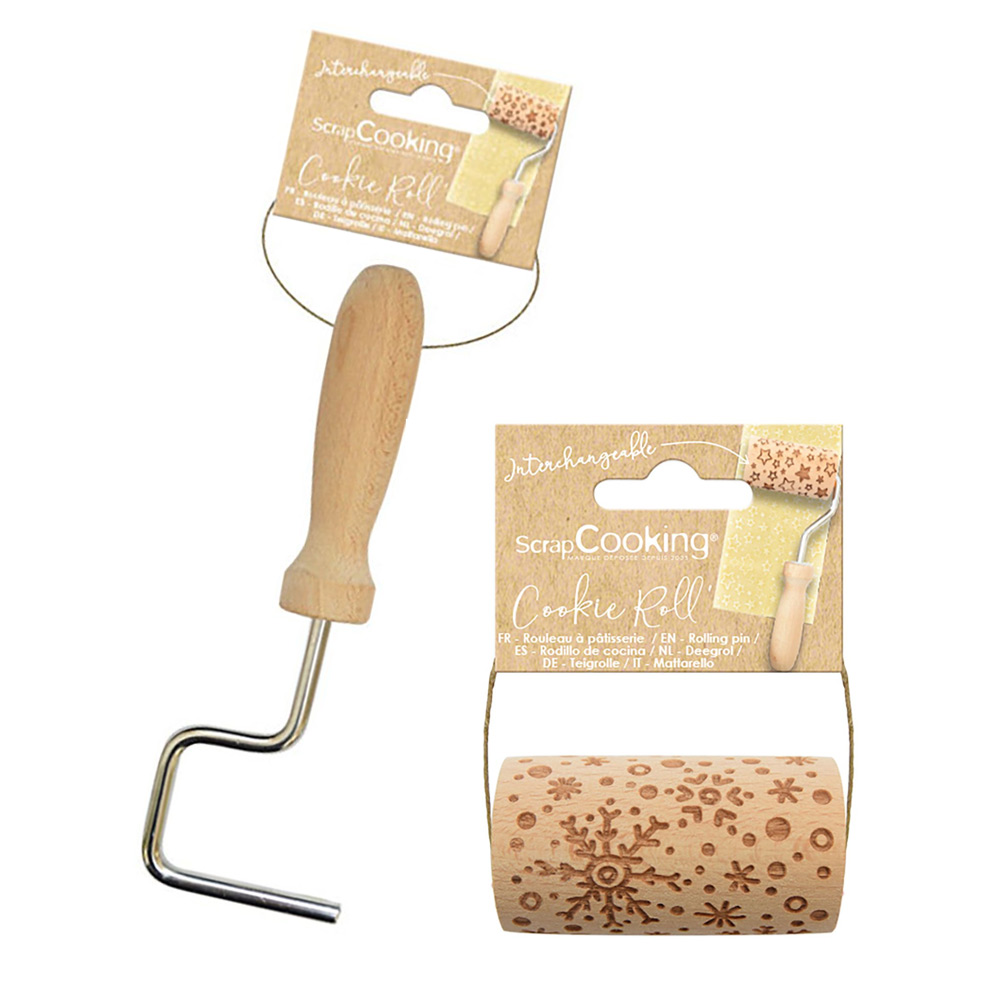 Smidig embosserkavel av trä från ScrapCooking. Med den här mönsterkaveln kan du skapa vackra snöflingor på sockerpasta, marsipan m.m. En fin dekoration till vinterns tårtor och bakverk.