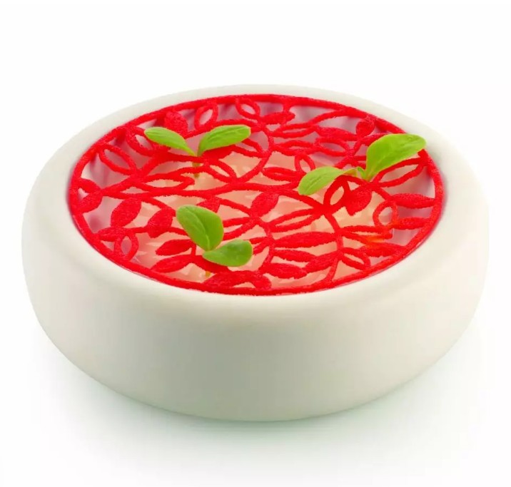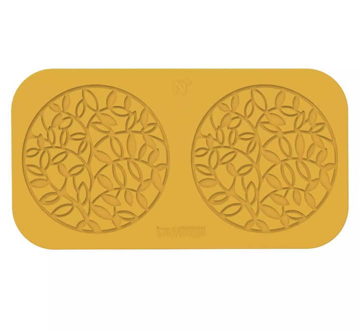 Skapa eleganta och raffinerade dekorationer med Silikomarts silikonmatta Esotico, som kan användas både med tuile och choklad. Den är perfekt för att dekorera förrätter, varmrätter eller för att ge en stilfull touch till upplagda desserter. För ännu mer praktisk användning kan silikonmattan även klippas längs de markerade riktlinjerna.