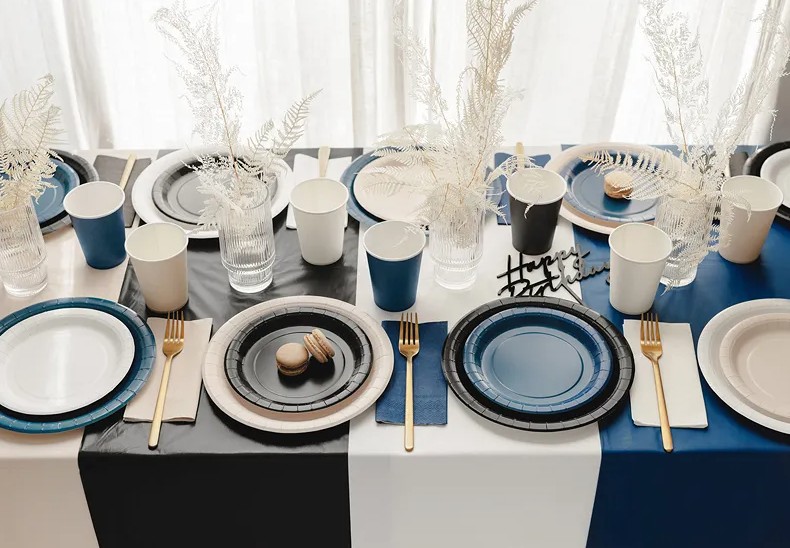 Tips! Matcha gärna med papperstallrikar, muggar och servetter i samma färg för en enhetlig dukning.