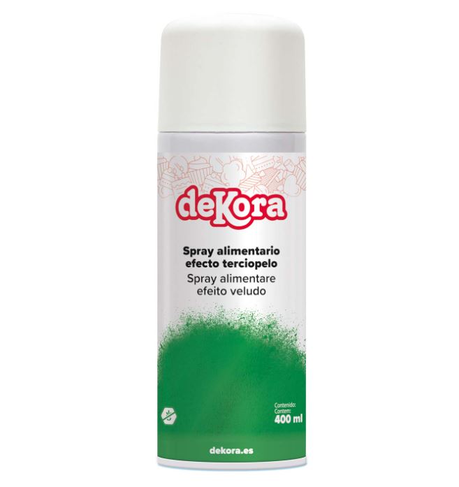 Skapa vackra sammetseffekter på dina bakverk med hjälp av Dekoras ätbara Velvet Spray. Här i större behållare à 400 ml. Sammetssprayen kan användas till mängder av olika desserter, tårtor, glass och mousse. Det är viktigt att du först fryser ned bakverket då sammetssprayen endast fäster mot frysta ytor.