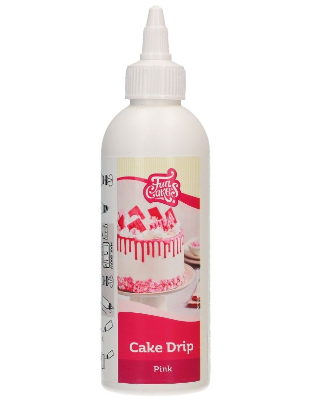 Ge dina tårtor eller cupcakes en snygg drip-effekt med Funcakes Choco Drip Pink i praktisk squeezy-flaska. Värm flaskan i mikrovågsugn och applicera sedan enkelt direkt på bakverket, inga spritspåsar behövs och den kan värmas upp flera gånger. Dripen har en god chokladsmak och en rosa färg.