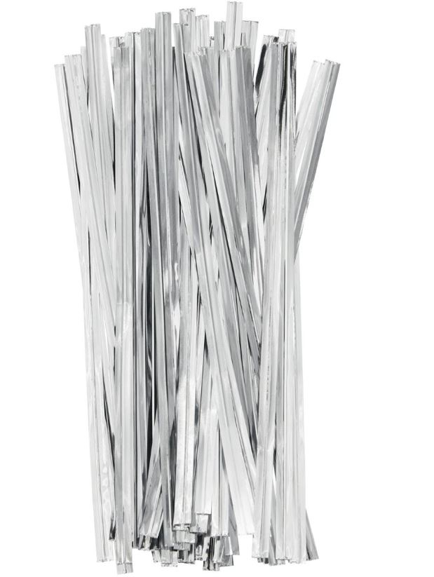 Återanvändningsbara påsstängare i silverfärgad plast. Påsförslutarna har en inre tråd av metall och håller att användas flera gånger. Använd för att försluta cellofanpåsar, godispåsar och andra små påsar. I förpackningen ingår 50 st.