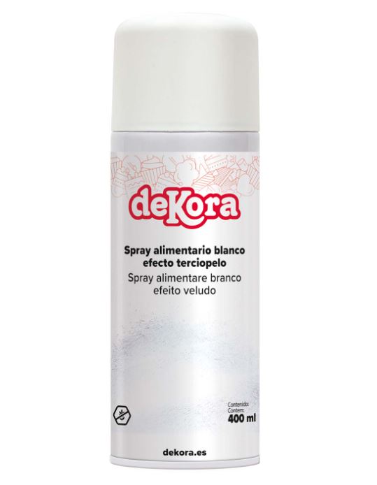 Skapa vackra sammetseffekter på dina bakverk med hjälp av Dekoras ätbara Velvet Spray. Här i större behållare à 400 ml. Sammetssprayen kan användas till mängder av olika desserter, tårtor, glass och mousse. Det är viktigt att du först fryser ned bakverket då sammetssprayen endast fäster mot frysta ytor.