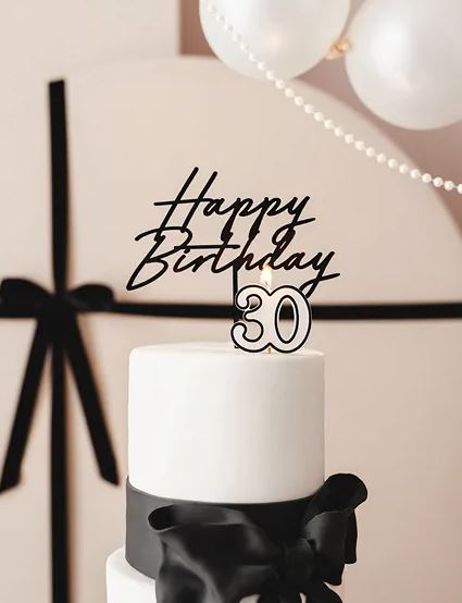 Toppa tårtan med texten "Happy Birthday" i modern skrivstil. Cake toppern är gjord av akrylplast och redo att stickas ned i födelsedagstårtan.