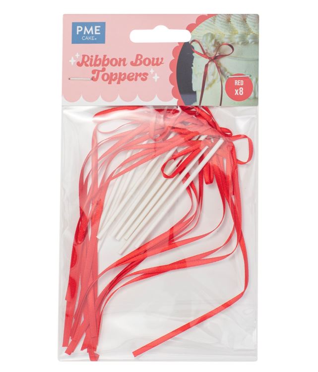 Ge dina bakverk en elegant finish med dessa dekorativa rosetter från PME. Rosetterna har en blank yta och levereras färdigknutna, fästa på en pinne som gör dem enkla att placera direkt på tårtor, cupcakes eller andra bakverk.