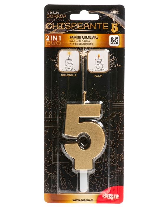 Sprakande 2-i-1 tårtljus till födelsedagstårtan. Det här guldfärgade ljuset har dubbla vekar, en traditionell ljusveke och ett tomtebloss. När tomteblossen brunnit ut kan ljuset brinna vidare tack vare den andra veken. En festlig dekoration till födelsedagsfirandet! Ljuset är guldfärgat.