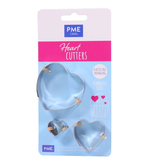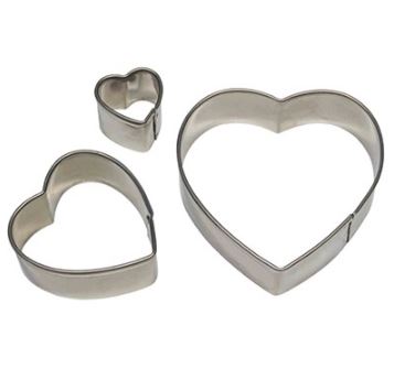 Utstickare, cookie cutters, för att skära ut hjärtan i tre olika storlekar. Använd för att skapa dekorationer av sockerpasta och marsipan eller varför inte baka hjärtformade småkakor. Utstickarna är tillverkade av rostfritt stål.