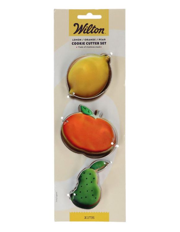 Ska du baka kakor i form av frukter? Med Wiltons utstickarset med citron, apelsin och päron kan du skapa färgglada kakor som kommer att glädja alla fruktälskare.