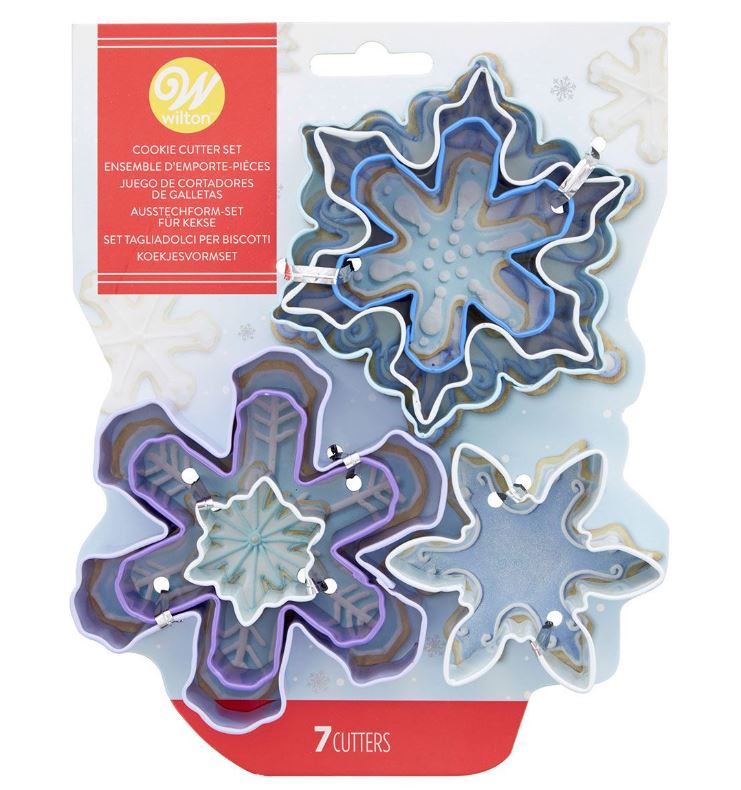 7 olika utstickare för snöflingor ingår.
