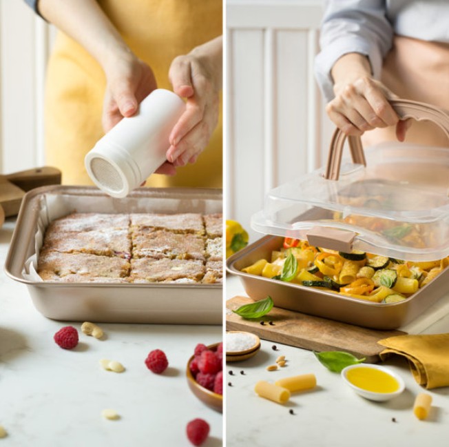Decora bakform med lock – praktisk och mångsidig för både bakning och matlagning. Setet består av två delar: en högkvalitativ, non-stick metallform och ett lock som gör det enkelt att förvara och transportera dina bakverk.