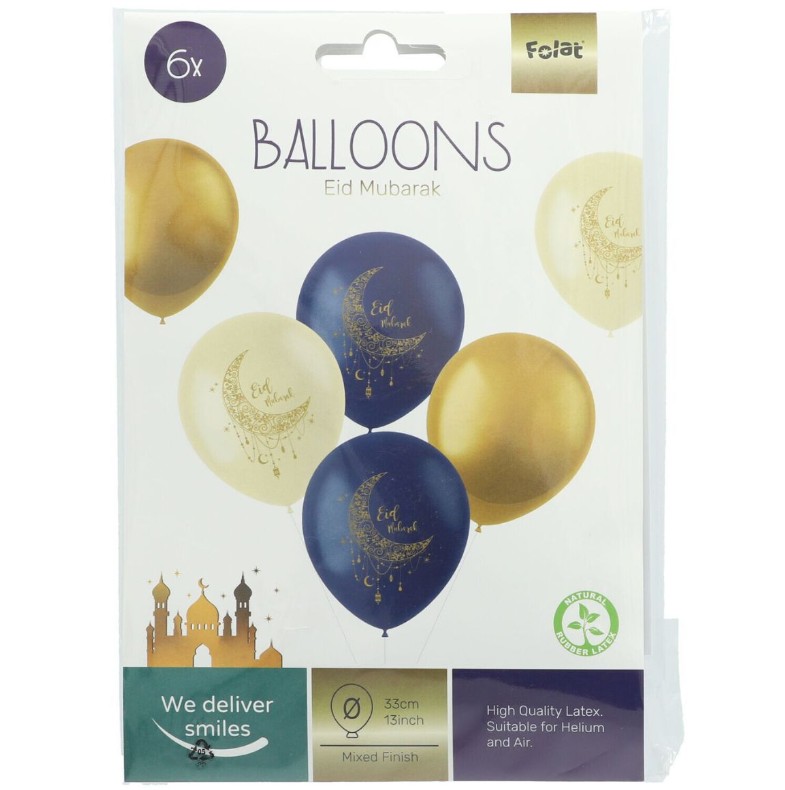 Skapa en festlig stämning under Eid med Folats Eid Mubarak-ballonger. Varje ballong mäter cirka 33 cm när den är uppblåst och är tillverkad av latex.