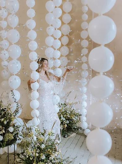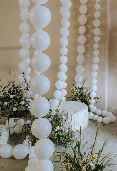 Skapa fantastiska ballonggirlanger för bröllop och andra festliga tillfällen med våra vita "linking balloons". Dessa ballonger är utformade med en flärp högst upp som enkelt knyts ihop med den andra ballongen och du kan skapa långa ballongrader och bågar utan tejp eller andra tillbehör. Häng dem över bordet för en svävande dekoration eller låt dem elegant hänga från tak till golv i festlokalen. Varje set innehåller 20 vita ballonger med en diameter på 33 cm.