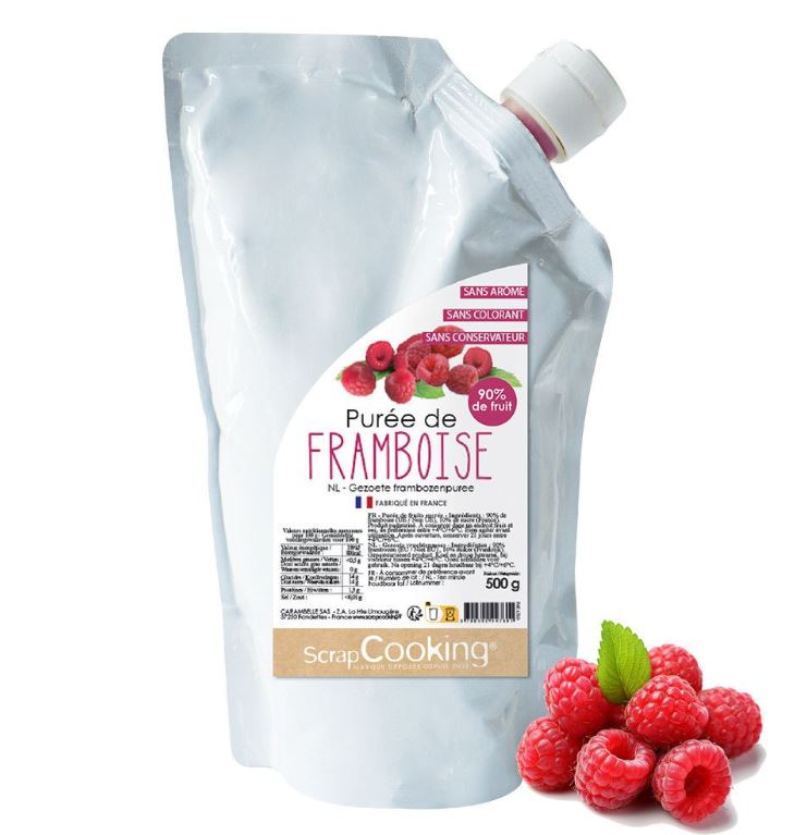 Hallonpuré från franska ScrapCooking. Puréen är perfekt för användning i exempelvis mousser, macarons, sorbet, glass, ganache, godis, fyllningar och cocktails.