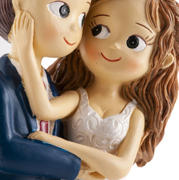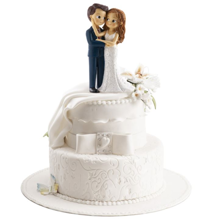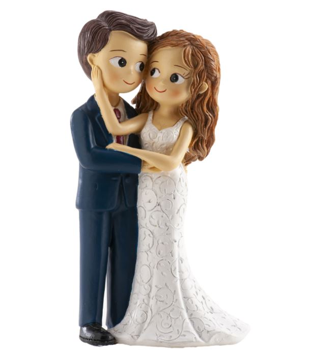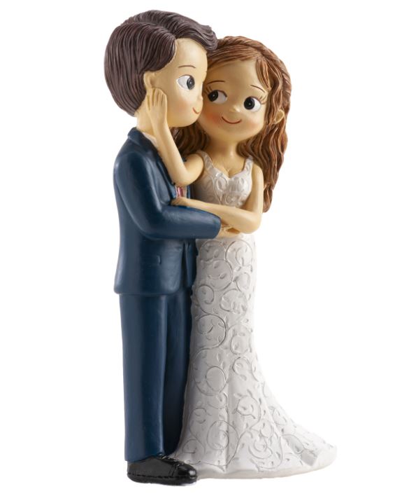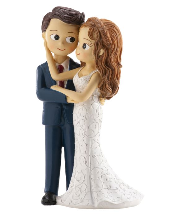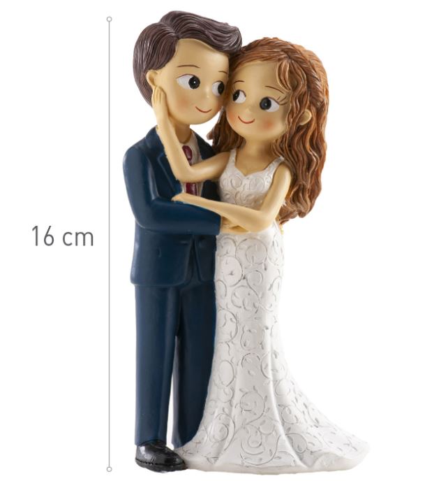Detta vackra brudpar från Dekora är en perfekt tårtdekoration för bröllopsfesten. Bruden har sin hand mjukt vilande mot brudgummens kind i en kärleksfull gest. Med en höjd på cirka 16 cm blir detta brudpar en iögonfallande och vacker detalj på bröllopstårtan. Efter festen kan det sparas som ett fint minne från den stora dagen.