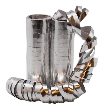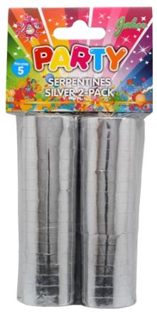 Serpentiner i silverfärgat folie passar till alla sorters firanden. Serpentinerna är gjorda av papper och kommer i 2-pack. Perfekt när du ge en skimrande touch till kalasdukningen.
