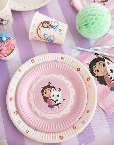 Fira födelsedagen med stil med dessa ljusrosa papperstallrikar med motiv från Gabby's Dollhouse. Perfekta att matcha med pappersmuggar och andra festartiklar i samma tema för ett roligt och färgglatt Gabby-kalas.