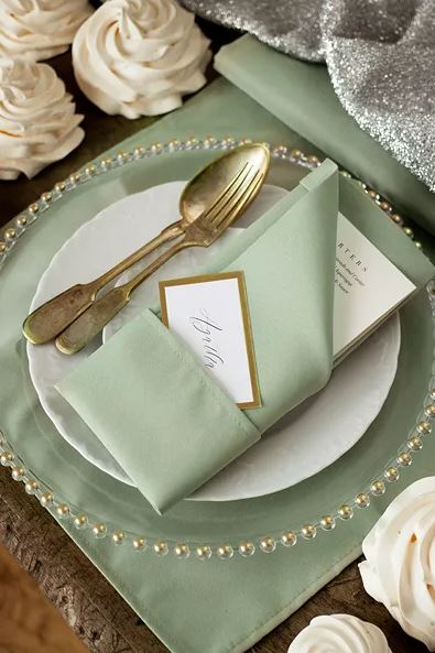 Lyft din dukning med dessa eleganta tygservetter i salviagrönt. De passar utmärkt för alla typer av tillfällen – från midsommarfirande och bröllop till andra festliga högtider.
