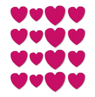 Sockerdekorationer i form av rosa hjärtan i tre olika storlekar.