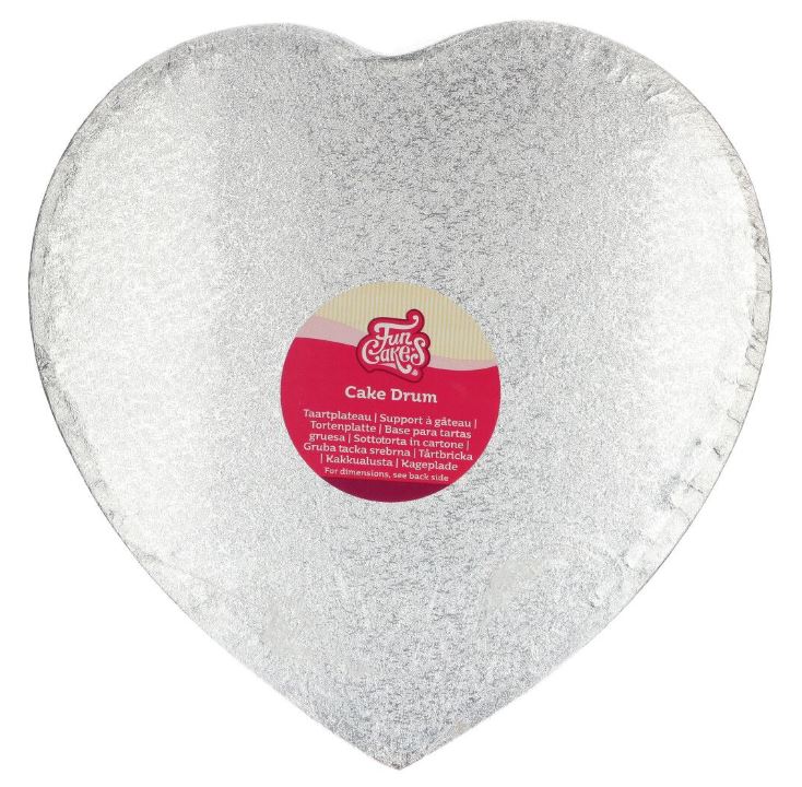 Tjock tårtbricka i hjärtform från FunCakes. Tårtbrickan är hela 1,2 cm tjock och ca 33 cm i diameter. Använd för att presentera bröllopstårtor, våningstårtor eller andra kärleksfulla bakverk.