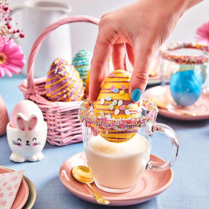 Vill du göra egna smaskiga chokladägg? Den här formen i genomskinlig mjuk plast innehåller två halvor i måtten 87 x 60 x 29 mm.