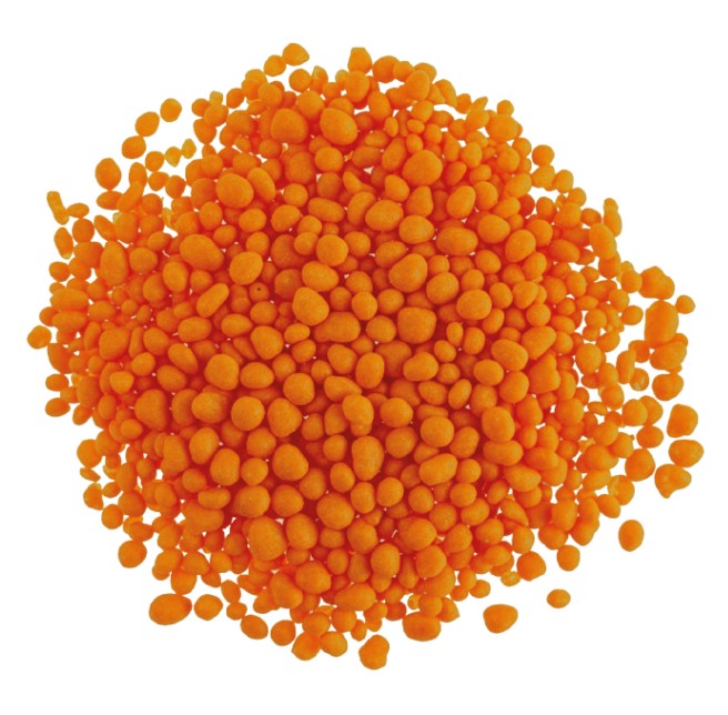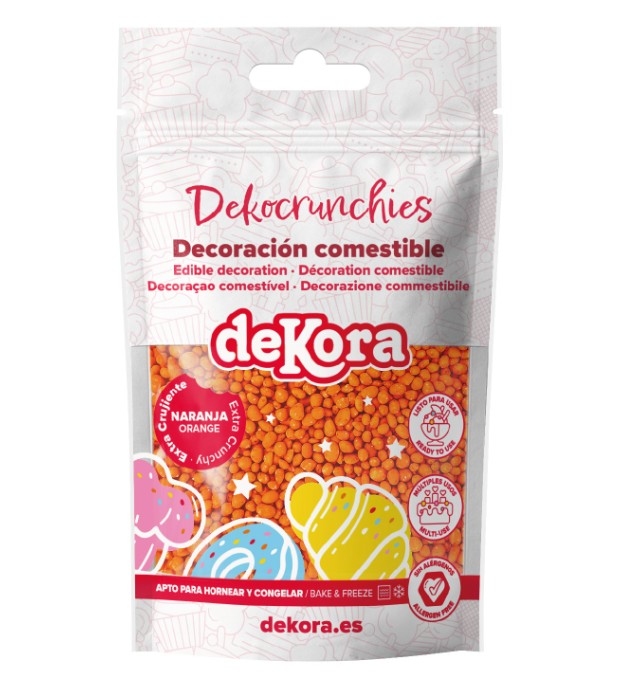 Orangea strösselkulor med apelsinsmak från Dekora. Strösslet är förpackat i en påse, 100 gram.