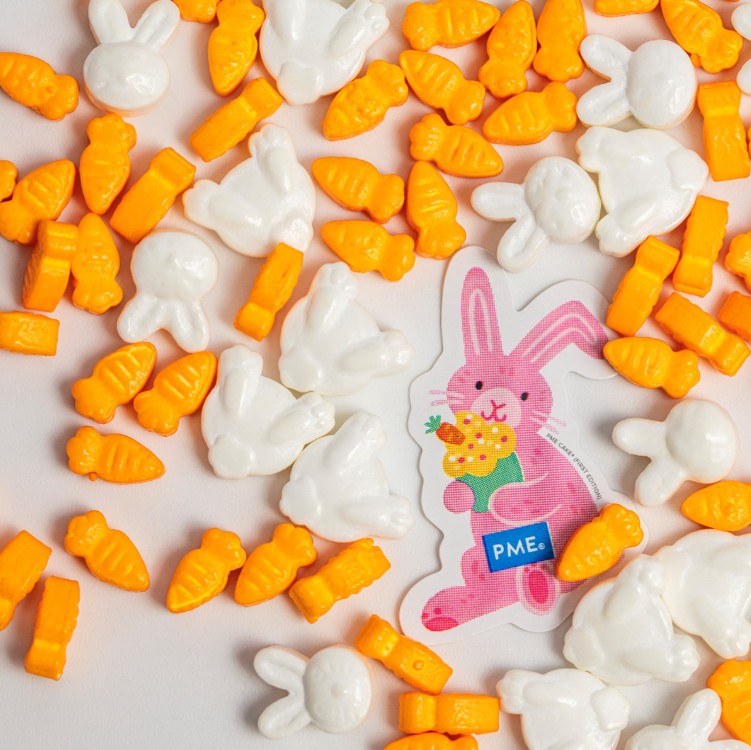 Ge dina bakverk en påskfin touch med PME:s strössel i form av kaniner och morötter! Dessa glada små dekorationer är redo att göra dina godsaker extra festliga.