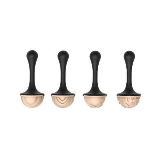 Stämpelkitet är skapat i samarbete med Lluc Crusellas och består av 4 plasthandtag och 4 silikonstämplar med olika mönster för att skapa originella dekorationer. Stämplarna är framtagna för att passa i Silikomarts pralinform UOVO 01-P.