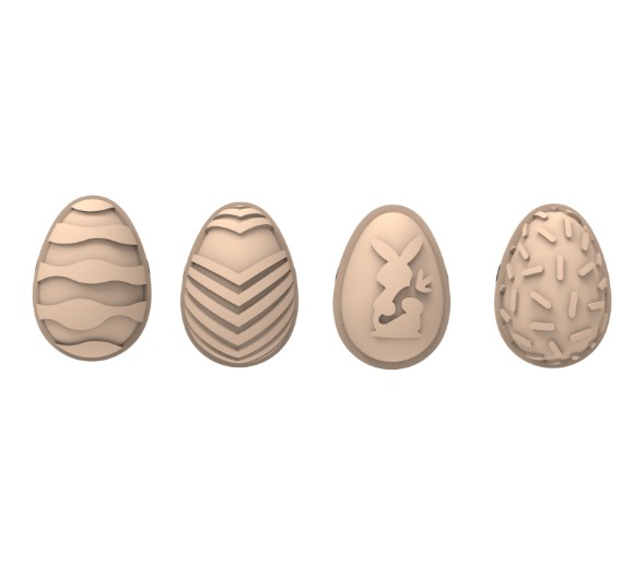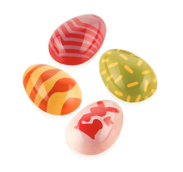 Silikomart Choco Stamp-kit för praliner, 4 olika påskmotiv. Med ett och samma kit får du 4 dekorativa motiv – perfekt för att ge dina chokladägg ett personligt och elegant uttryck.