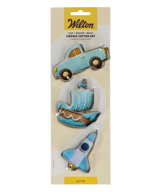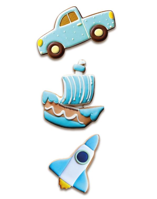 Planerar du ett kalas med bil- eller rymdtema? Använd Wilton-utstickarsetet med bil, raket och båt för att baka spännande kakor som kommer att glädja alla små äventyrare.