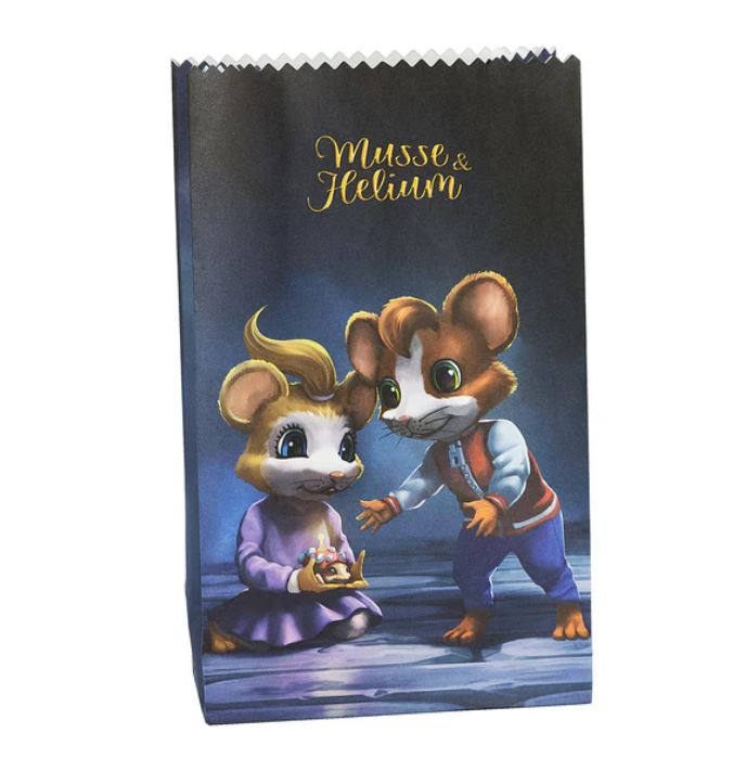 Kalaspåsar i papper med barnens favoriter Musse & Helium. Åtta påsar ingår i förpackningen, perfekt till skattjakten eller fiskdammen på kalaset. Kombinera gärna med övriga produkter i Musse & Helium-temat.