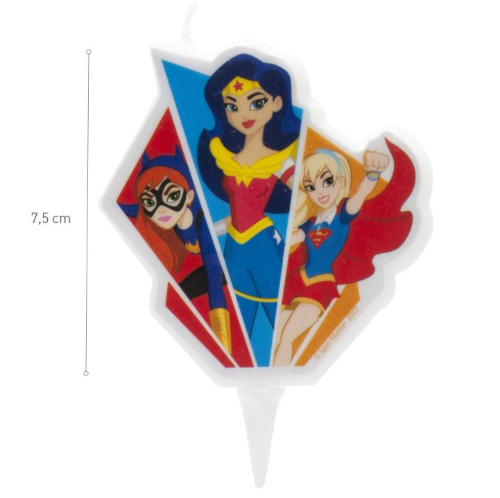 Tårtljus med Supergirl, Wonder Woman och Batgirl från DC Super Hero Girls. Tårtljuset är ca 7,5 cm högt, en perfekt topper till superhjältetårtan!