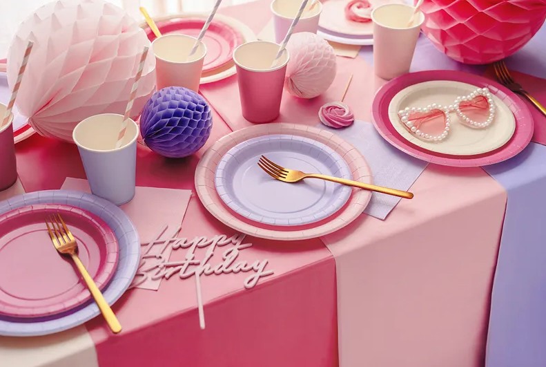 Tuo kattaukseen juhlavuutta tällä vaaleanpunaisella kalaliinalla. Liina sopii täydellisesti kutsuvan ja iloisen kattauksen luomiseen syntymäpäiville, babyshowereihin tai muihin hauskoihin juhlatilaisuuksiin.
