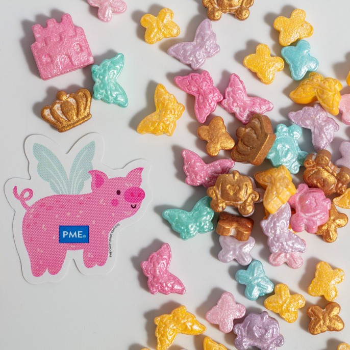 Anna leivonnaisillesi taianomainen ja leikkisä ilme PME:n prinsessakoristeraemixeillä! Nämä pienet koristeet, joissa on perhosia, linnoja ja prinsessakruunuja, tekevät kakkujen ja cupcakien koristelusta helppoa ja ne sopivat täydellisesti prinsessateemaan – ihanteelliset juhliin, lasten syntymäpäiviin ja muihin satumaisiin tilaisuuksiin.