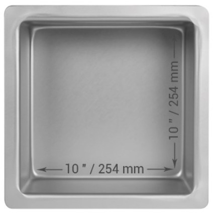 Neliönmuotoinen PME-kakkuvuoka (254 x 254 x 102 mm/10 x 10 x 4") takaa täydelliset ja tasaiset reunat joka kerta.