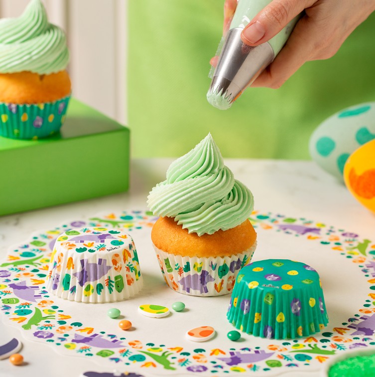 Nämä koristeelliset kakkupaperit on valmistettu leivinpaperista, ja ne sopivat erinomaisesti tarjoiluun ja esillepanoon sekä jälkiruoille että suolaisille herkkuille dinosaurus-teemaisissa juhlahetkissä.