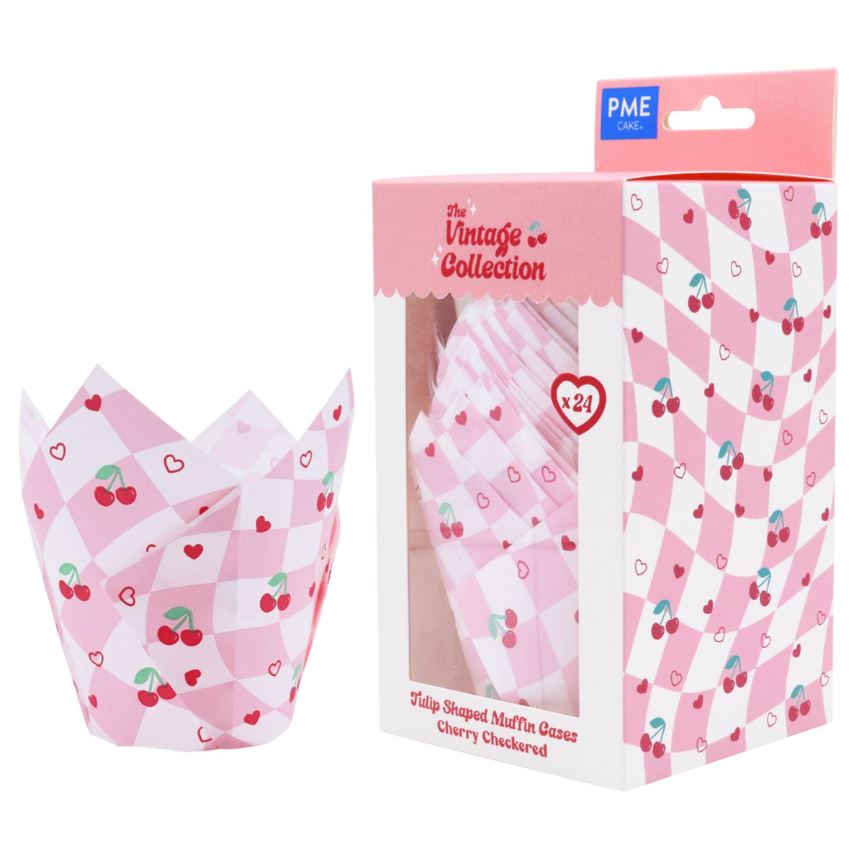 Anna leivonnaisillesi elegantti vintage-ilme PMEn tulppaanimallisten muffinivuokien avulla, joissa on viehättävä kirsikkaruutukuvio.